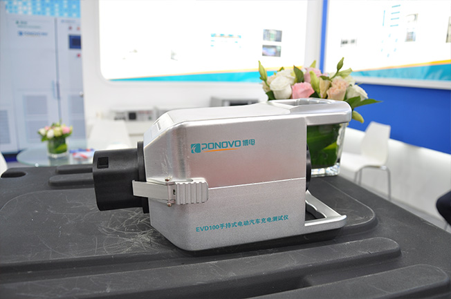 ▲手持式电动汽车充电检测仪为特斯拉现场操作演示